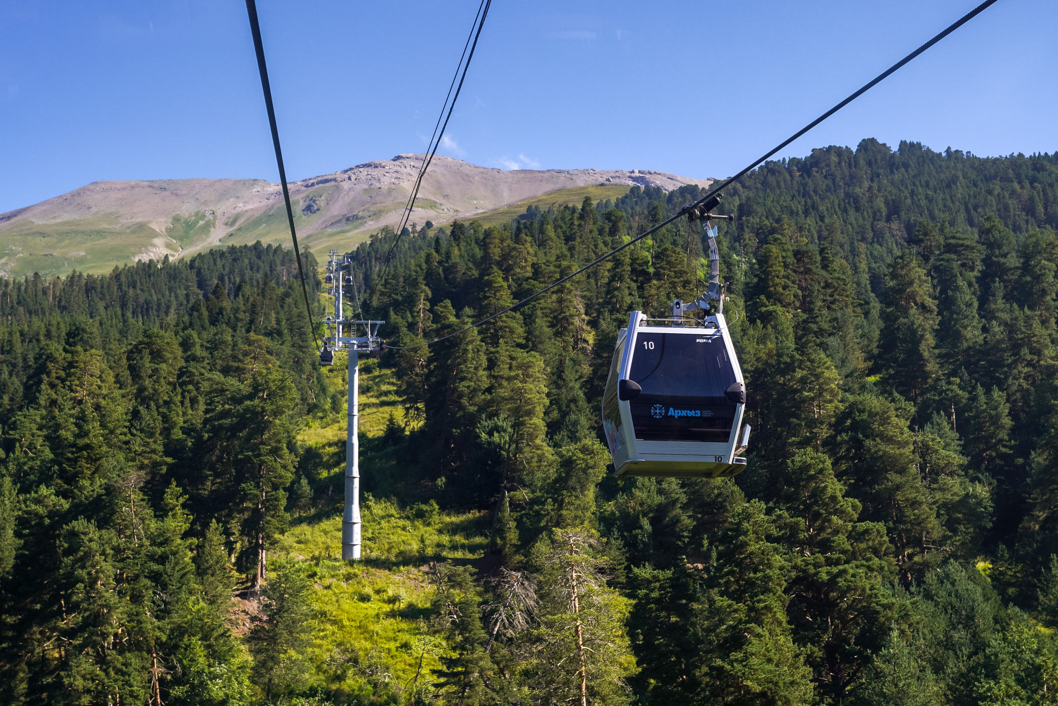 Путь наверх занимает 11 минут. Со смотровой площадки как на ладони видны самые высокие пики Архыза: Пшиш и София. Также именно оттуда начинается путь наверх, к перевалу Федосеева, и дальше, к бирюзовым озерам хребта Абишира-Ахуба.