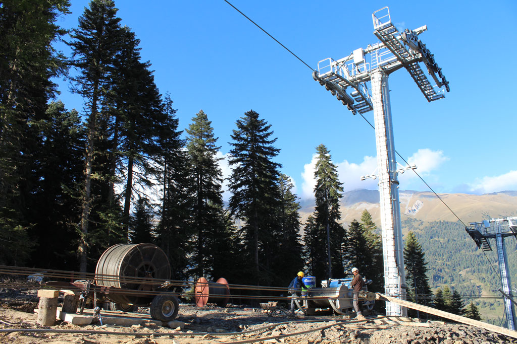 Аналогичные работы по первой секции выполнены, и уже протестирована работа КД с подвижным составом — 10-ти местными гондолами. Общая протяженность всех трех секций 3800 м.