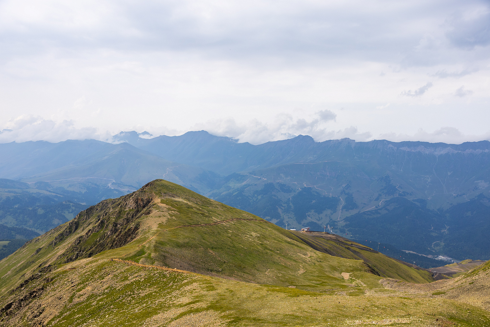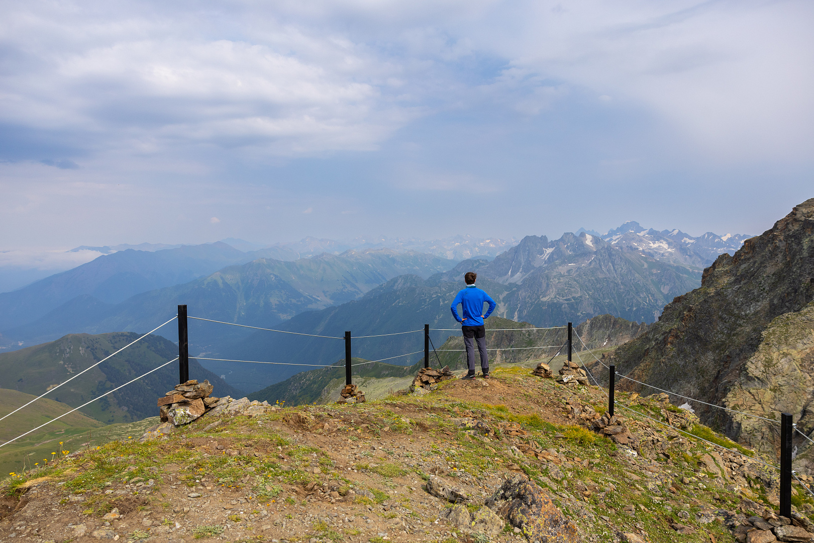 Маршрут начинается от верхней станции канатной дороги «Аполлон» на высоте 2840 м над уровнем моря. От станции канатной дороги тропа плавно ведет вверх на седловину хребта Габулу-чат, откуда открываются уже фантастические виды. Для тех же, кому не хватило красоты и эмоций, можно подняться на ближайший пик Габулу на высоту 3050 м. Здесь можно бесконечно любоваться пейзажами на 3600: гора Темир-Кулак и исток одноименного ручья, который начинается из тающих снежников, самая ближайшая к курорту морена – напоминание о бывшем здесь когда-то леднике, отроги Главного Кавказского хребта и даже пики Кавказского заповедника в Сочи и вершины гор Абхазии.