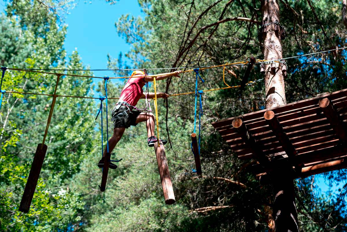 2 сложных этапов в тени хвойного леса с отличным видом на Кавказские горы. Бревна, канаты, перекладины, сноуборд и велосипед на высоте от 4 до 10 метров.Бонус для тех, кто пройдет и не дрогнет — еще 6 этапов, включая скалодром и троллей! Всего 400 м вызовов и приключений.