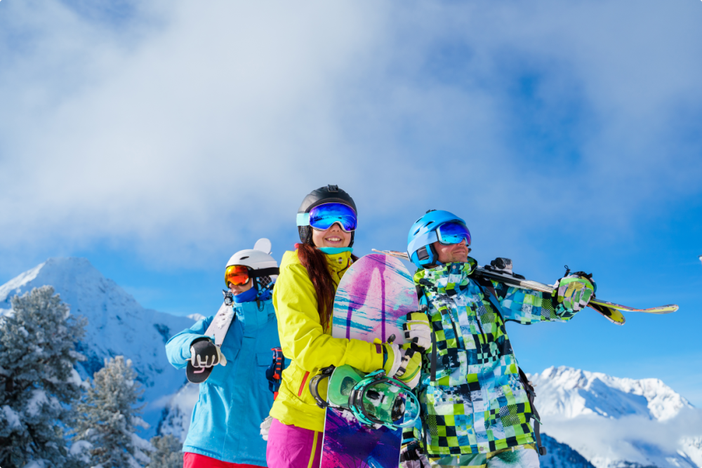 Вы можете приезжать налегке — мы обеспечим вас всем необходимым для катания: лыжами или сноубордом, ботинками, палками, перчатками, горнолыжной маской, шлемом, горнолыжной курткой и брюками.